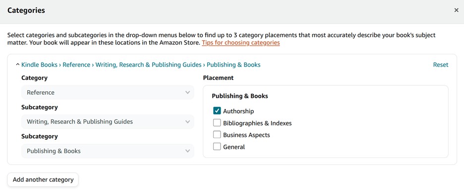 Choose Different Categories for the Kindle Edition